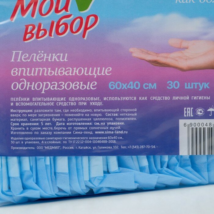 Пелёнки впитывающие одноразовые "Мой выбор", 60 х 90 см, 30 шт.