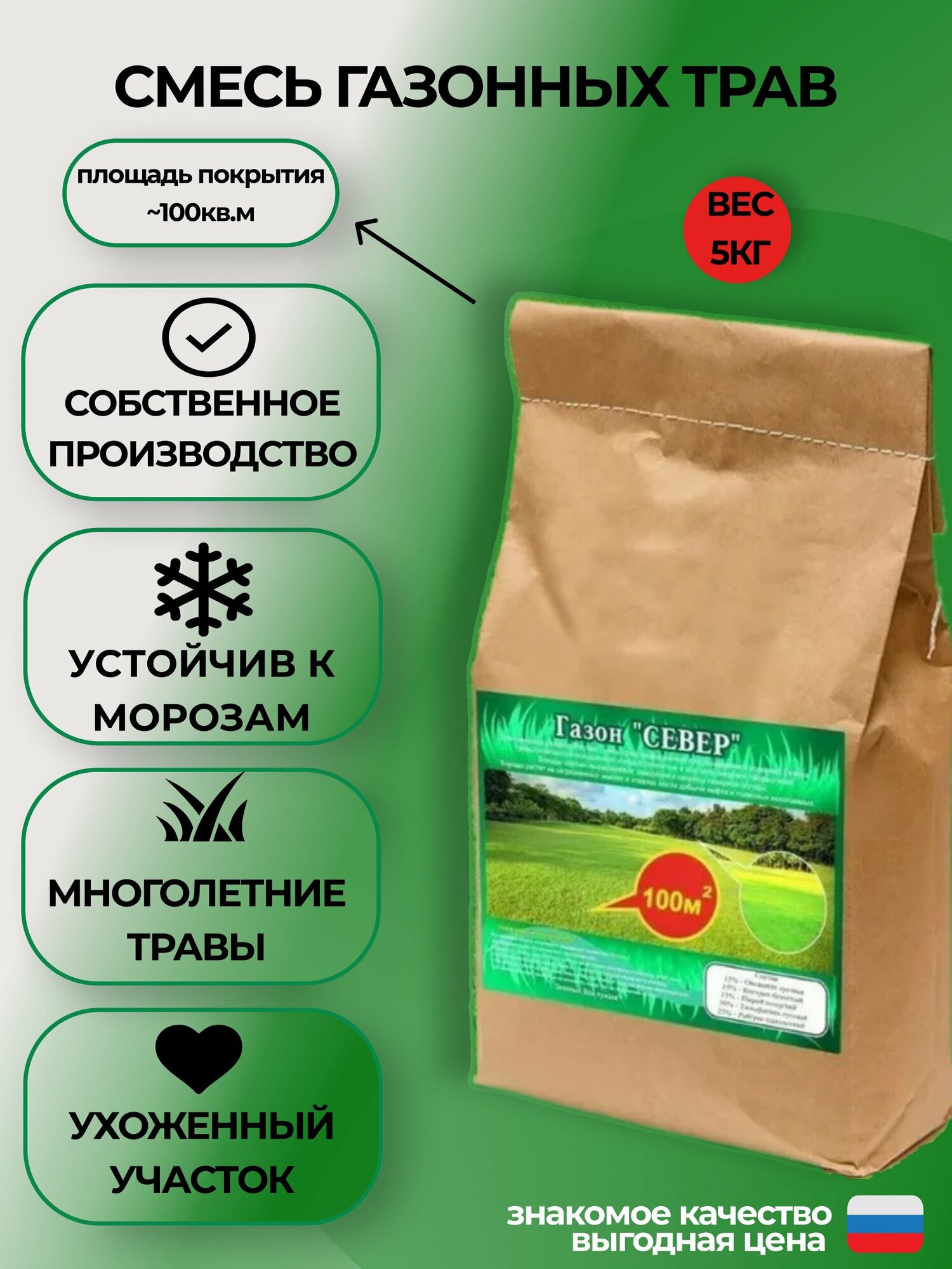 10 цен на Семена газонной травы "Зеленый Метр", смесь семян газонных трав "Газон "Север", 5 кг