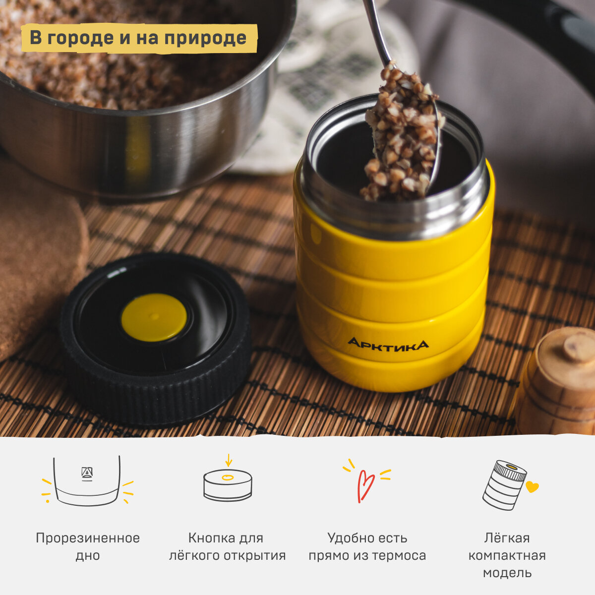 Термос для еды Арктика 307-480 0.48л. желтый/черный картонная коробка (307-480/YEL) 1 672 ₽