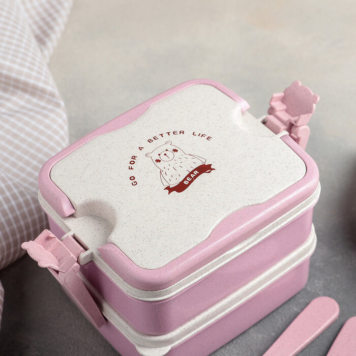 Отзывы на Ланч-бокс «Мишка», 2 отделения (700 мл + 700 мл), с ложкой и вилкой, цвет микс