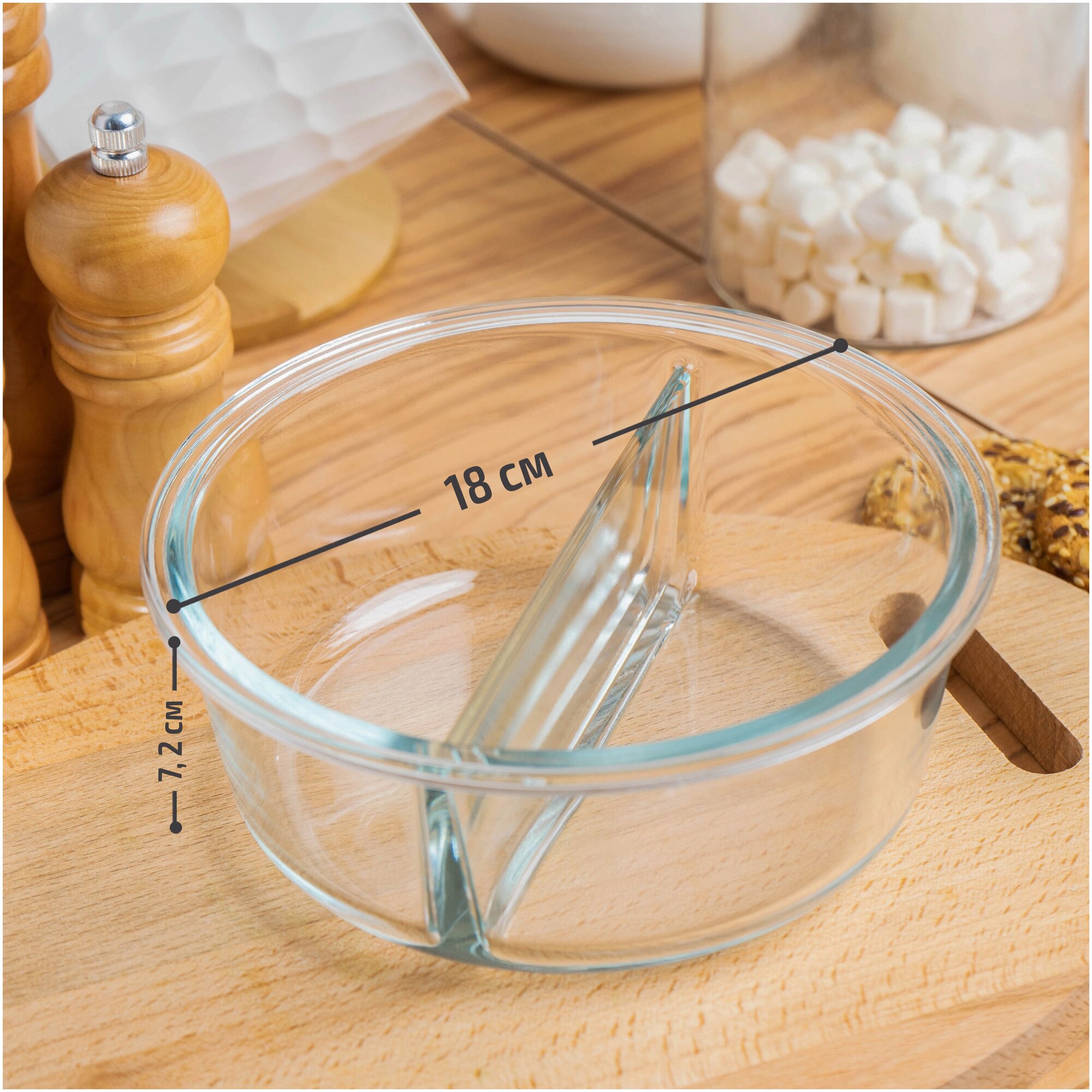 Контейнер из жаропрочного стекла двухсекционный круглый с крышкой Cookn Freeze, 780 мл, 18×7,2 см, цвет микс 1 103 ₽