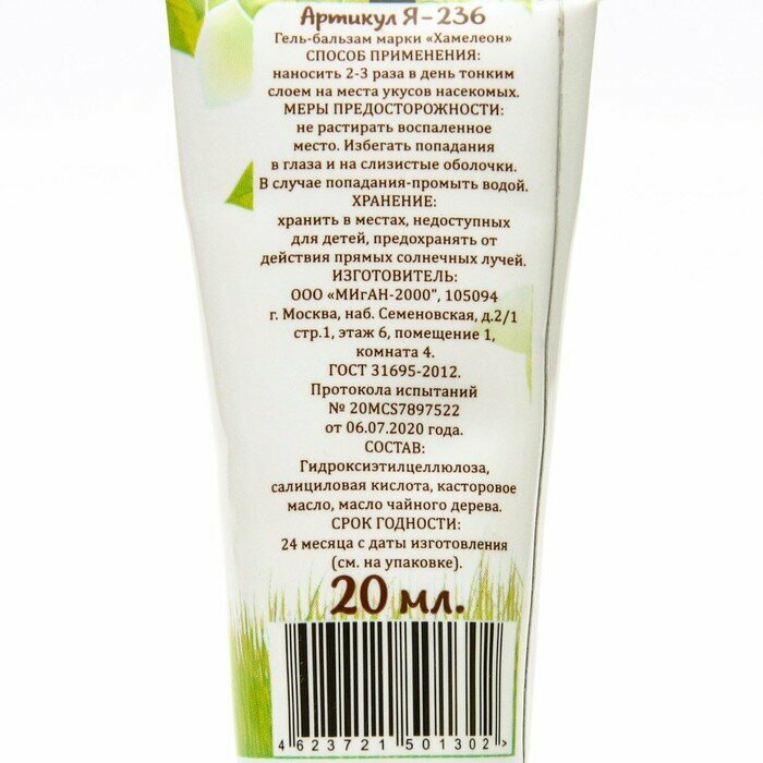 Отзывы на Гель-бальзам после укусов насекомых "Chameleon", 20 мл./В упаковке шт: 2