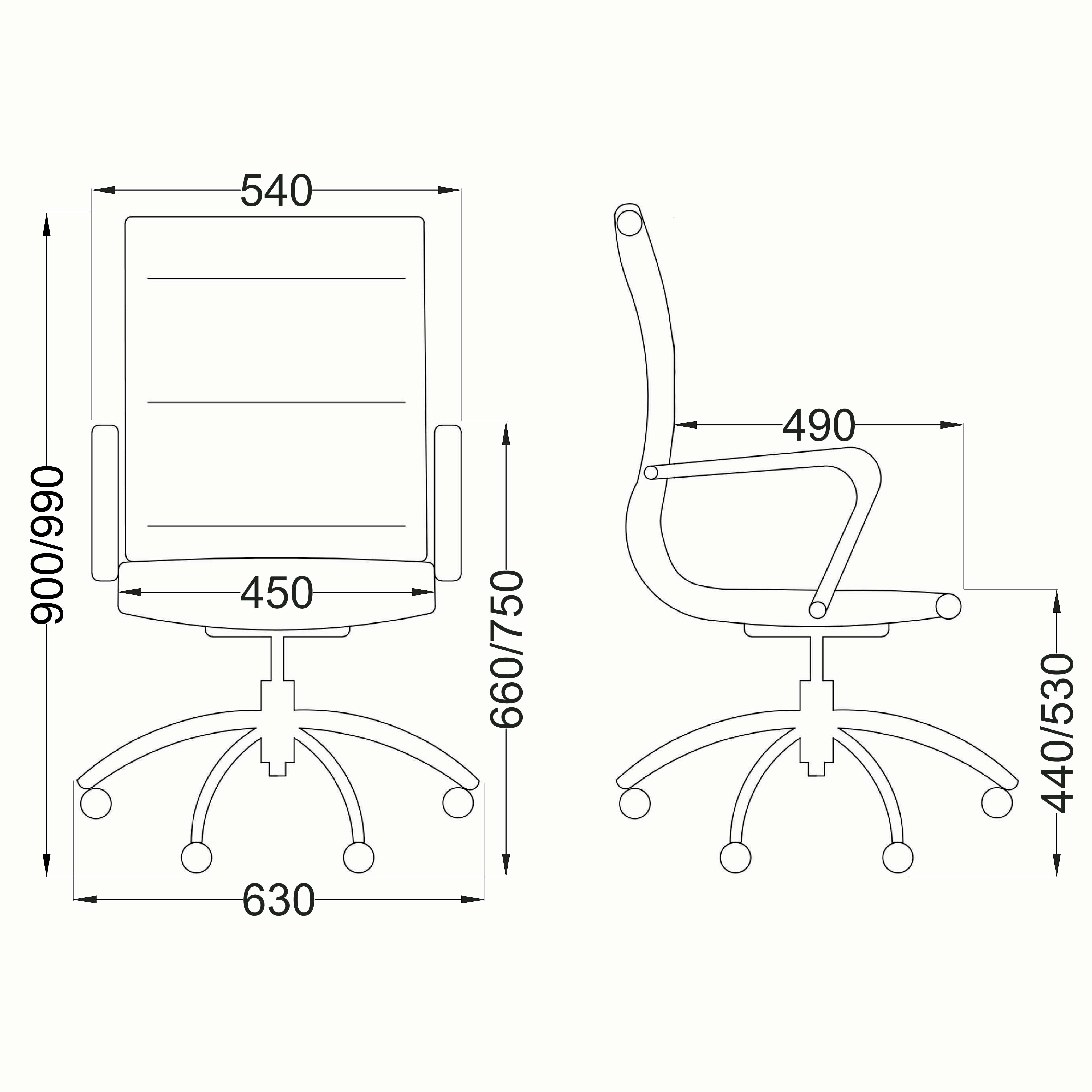 Кресло офисное без подлокотников, 395х420х720(940) мм, черное, ткань