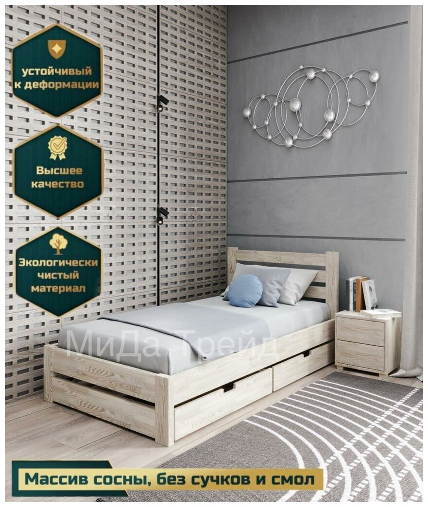 10 цен на Односпальная кровать МиДа-Трейд "Амелия-2" 90х200 с 2-мя ящиками из массива дерева (сосна) без покраски