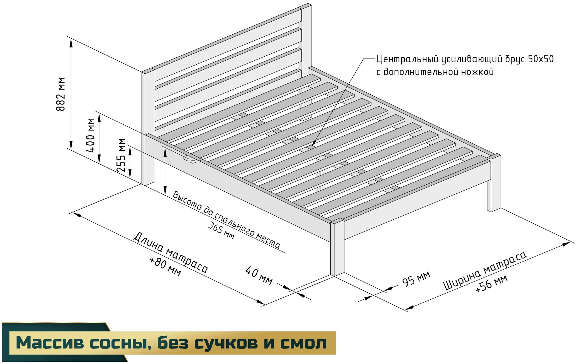 Двуспальная кровать "Амелия" из массива дерева (сосна) без покраски МиДа-Трейд. Под матрас 140х190 см. информация: