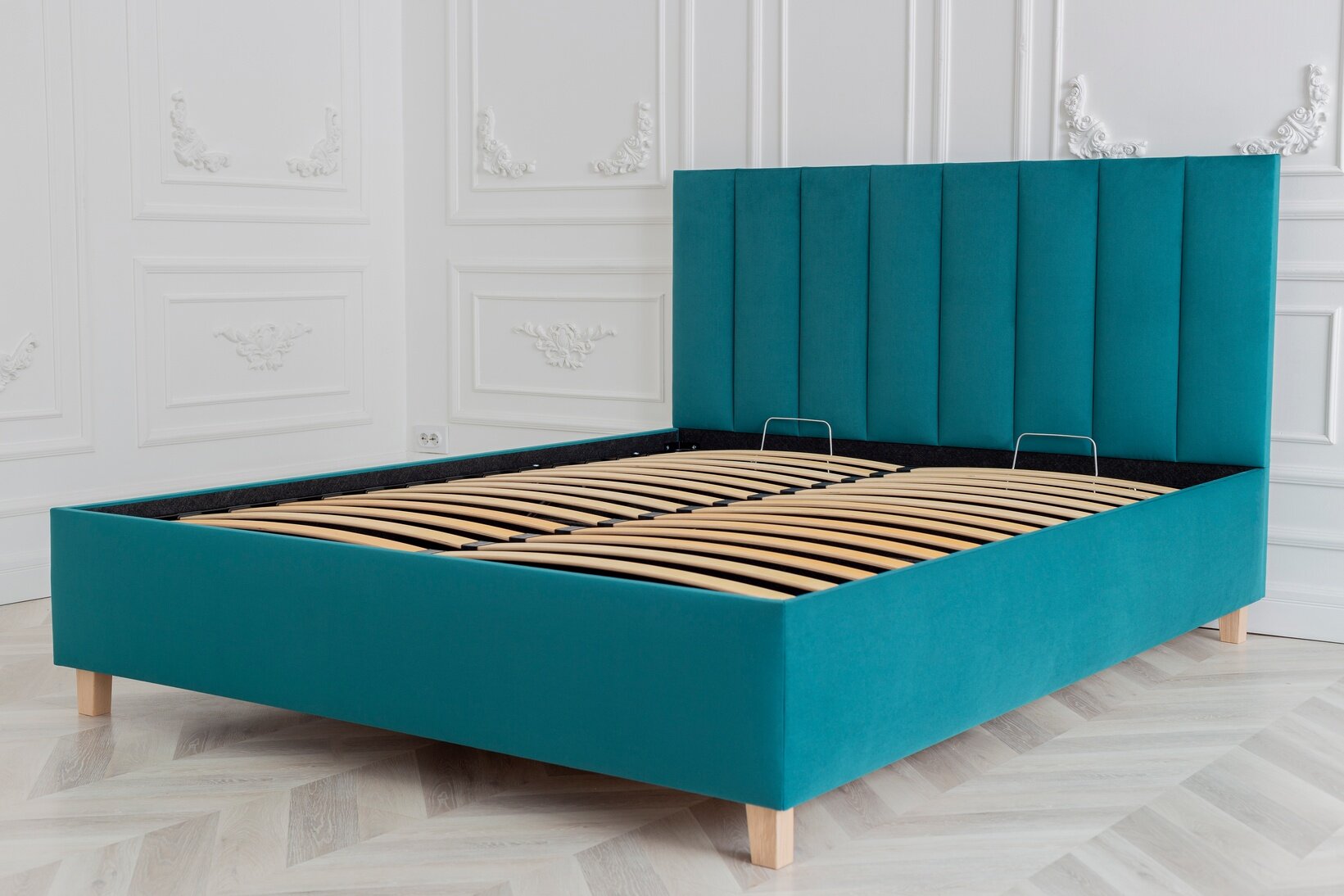 InRoom Мягкая кровать из массива с подъемным механизмом и ящиком для белья ИнРум Квадро с ножками