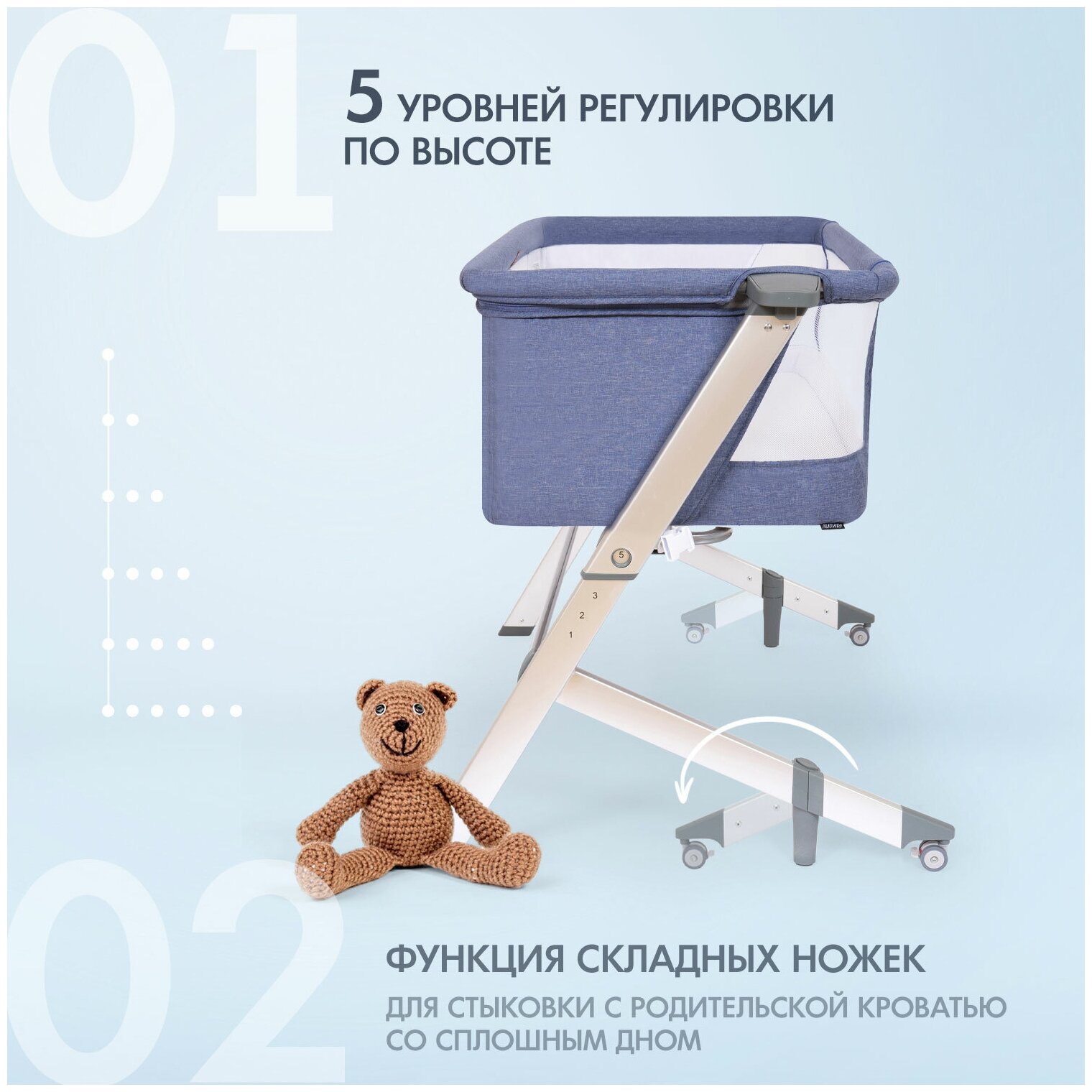 Колыбель Nuovita Accanto Dalia (Blu chiaro, Argenteo/Светло-голубой, серебристый)