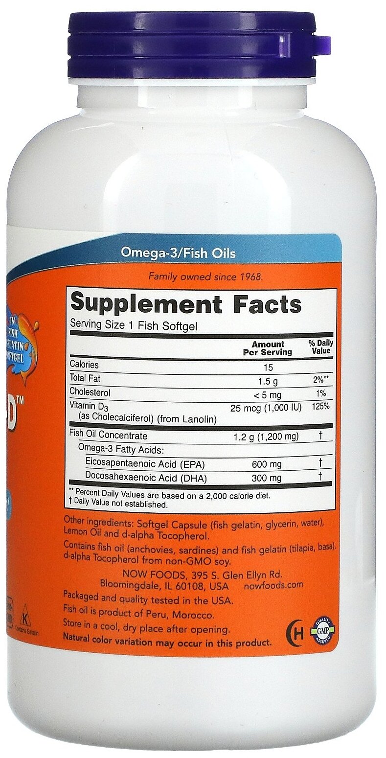 Капсулы NOW Ultra Omega 3-D 600/300, 180 шт. информация: