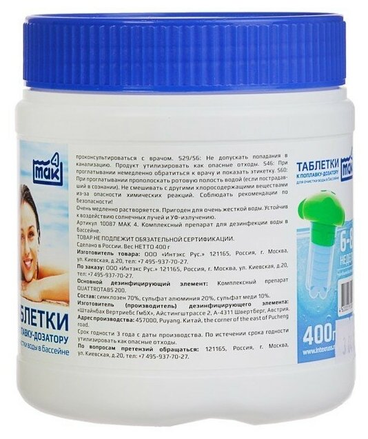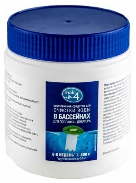 Комплексный препарат МАК 4 для длительной дезинфекции воды в бассейне 2 * 200 гр 198021 MAK (бытовая .