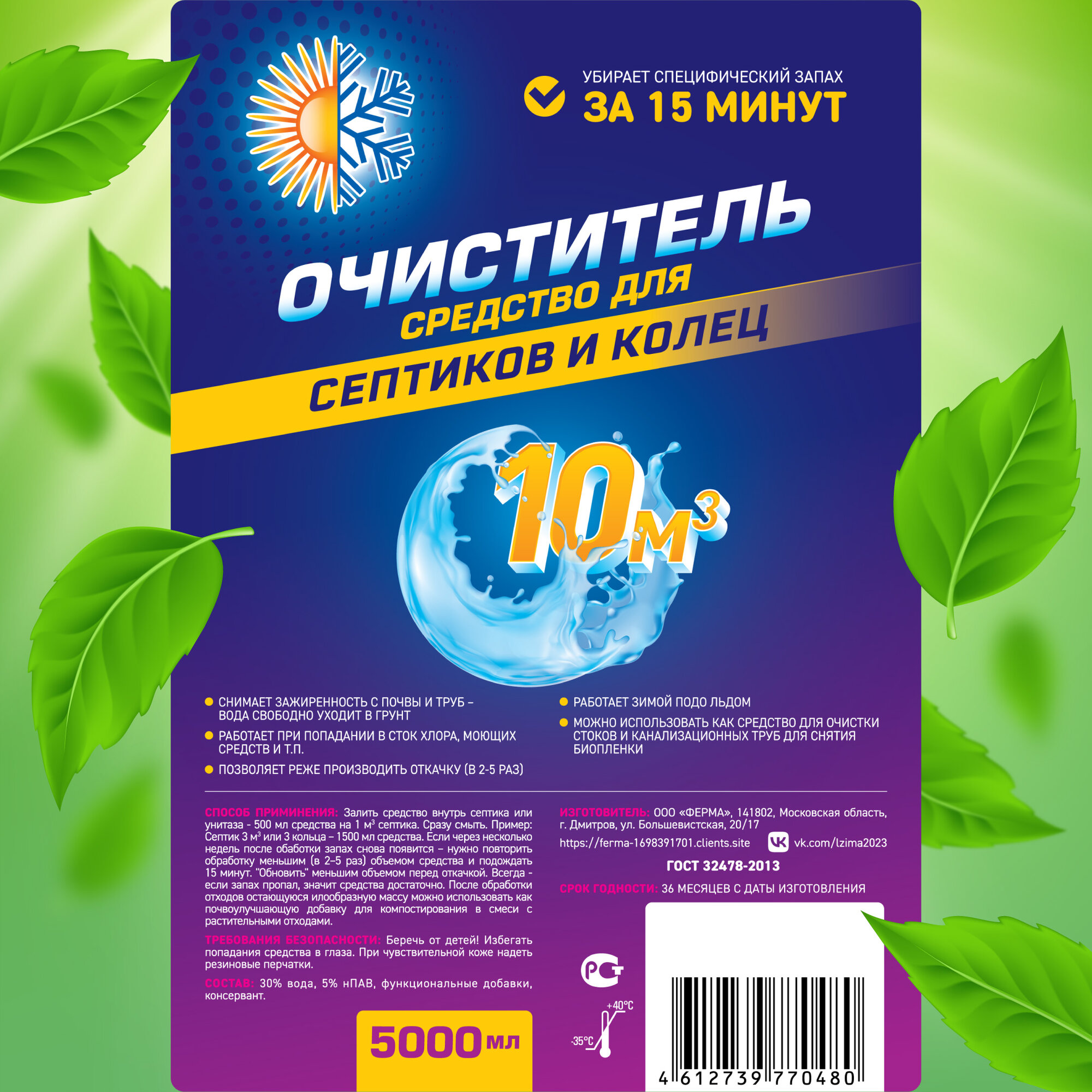 10 цен на Средство для септиков и колец 5 л "Летом и Зимой", биоактиватор для выгребных ям и дачных туалетов
