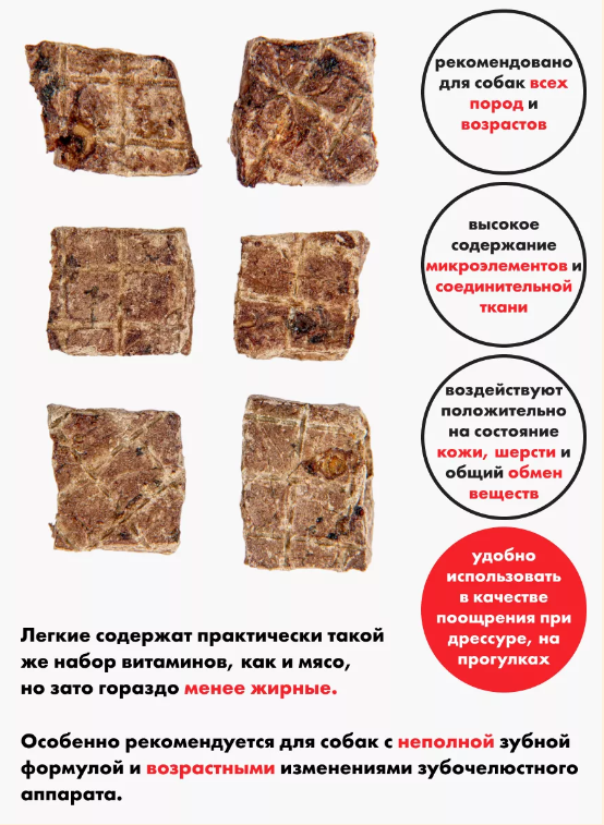 Лакомство для собак - Лёгкое говяжье сушеное 2х2 см, 300 гр