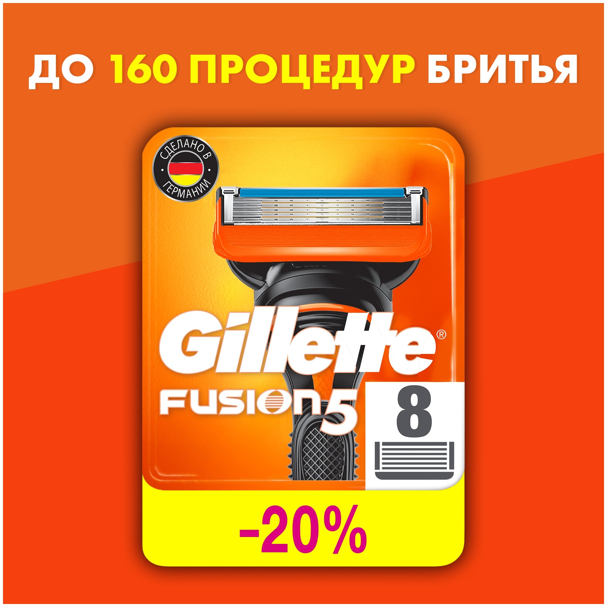GILLETTE Fusion 5 Сменные кассеты для бритья с 5 лезвиями, мужские, 8 шт