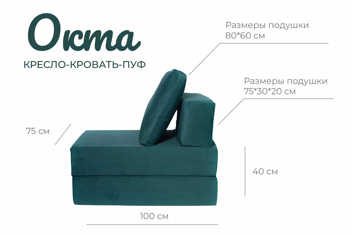 Отзывы на Кресло-кровать-пуф бескаркасное 75*100*75 "Окта" велюр FREE-FORM Изумруд