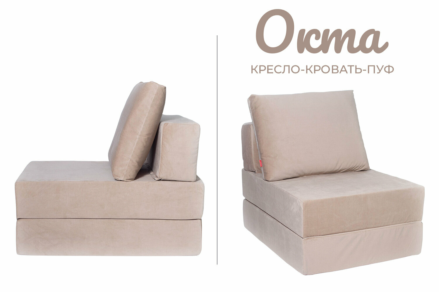 Кресло-кровать-пуф бескаркасное 75*100*75 "Окта" велюр FREE-FORM Бежевый информация:
