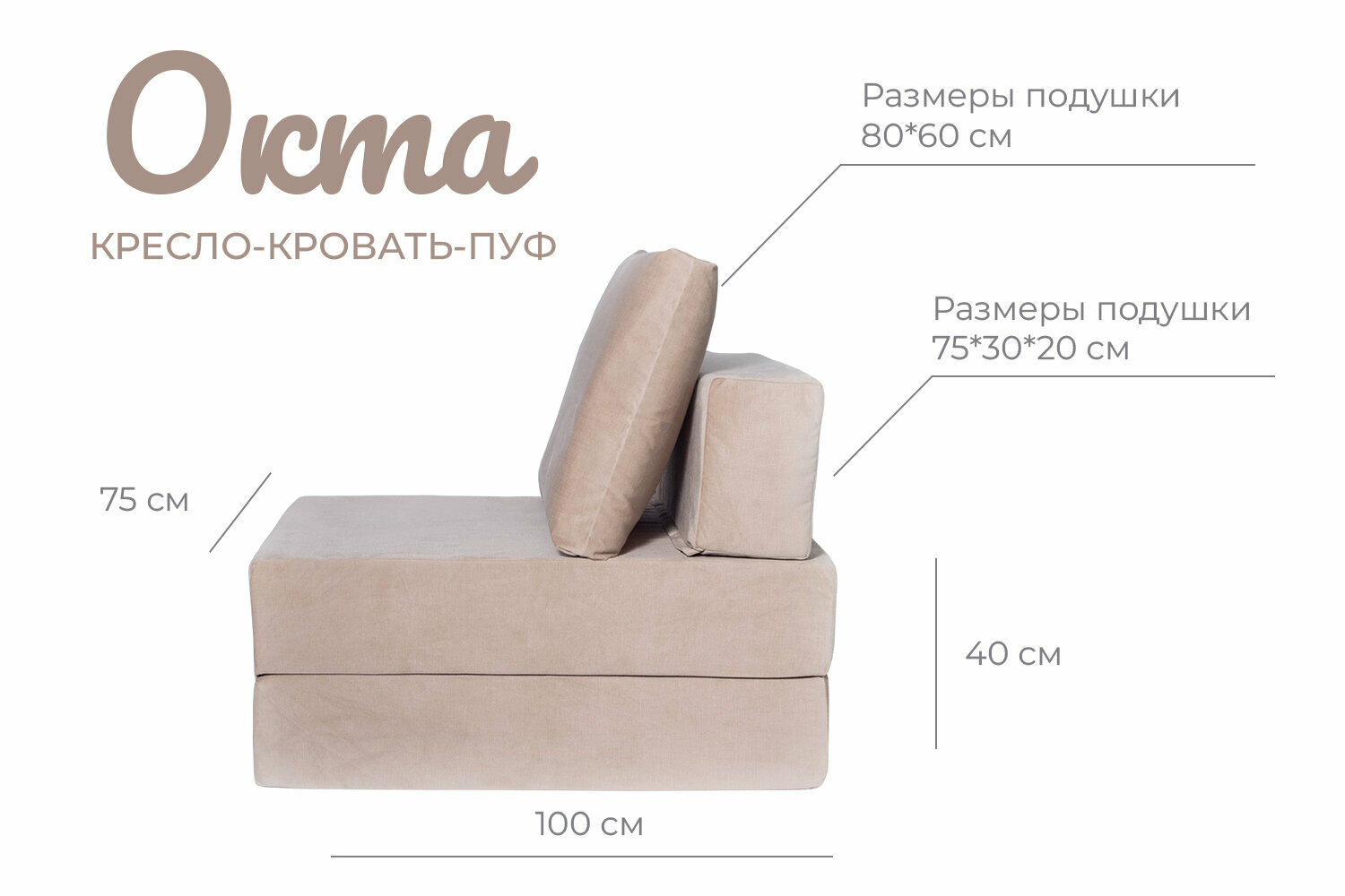 Отзывы на Кресло-кровать-пуф бескаркасное 75*100*75 "Окта" велюр FREE-FORM Бежевый