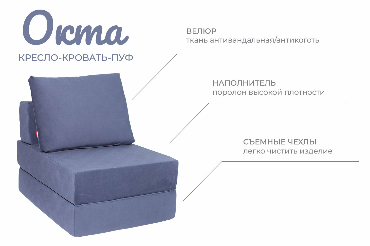 WOWPUFF Кресло-кровать-пуф бескаркасное 75*100*75 "Окта" велюр FREE-FORM