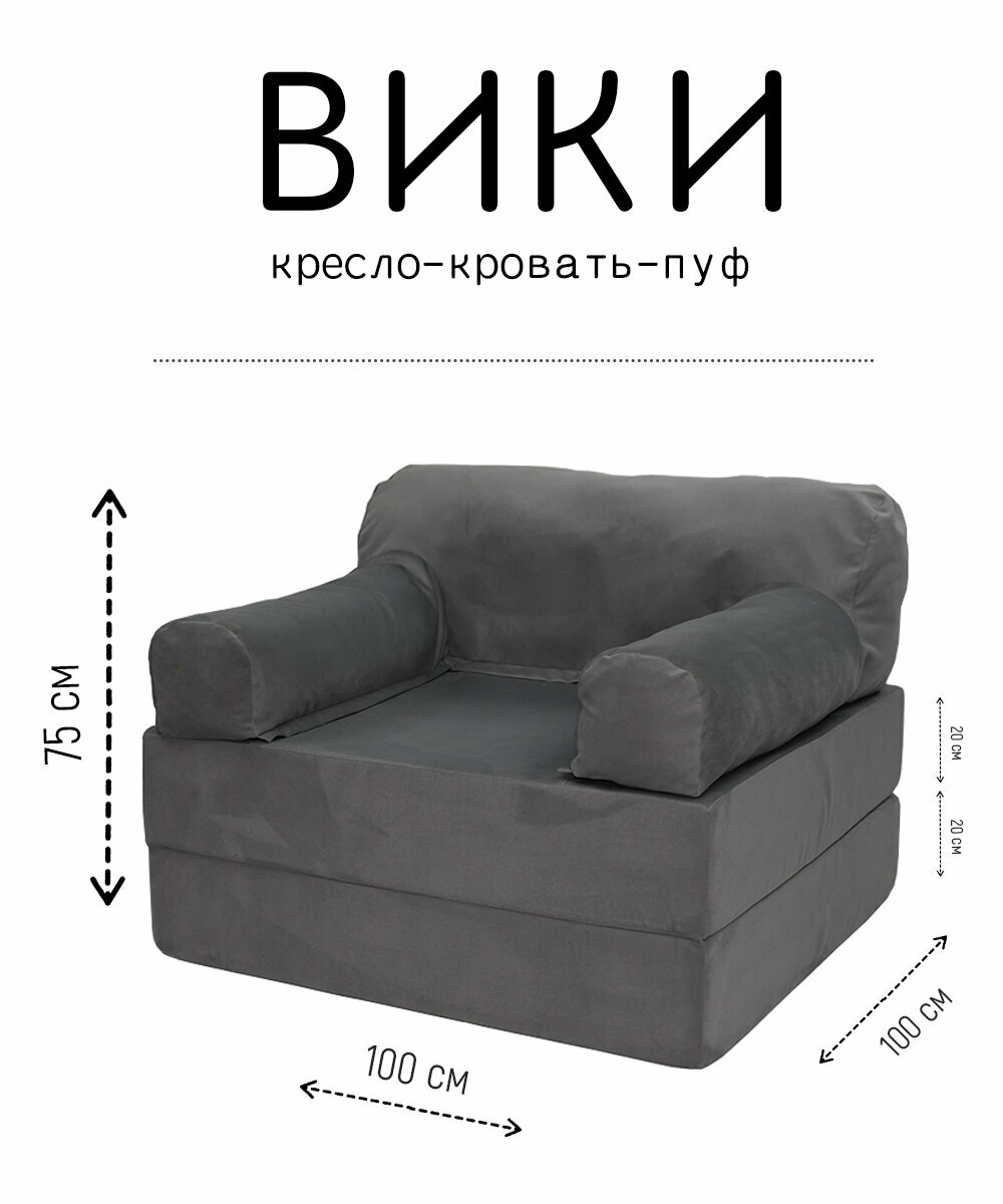 10 цен на Кресло диван кровать бескаркасное Вики 100х100х75 с подушкой-опорой для отдыха на балконе террасе веранде лоджии в холл поролон велюр серый