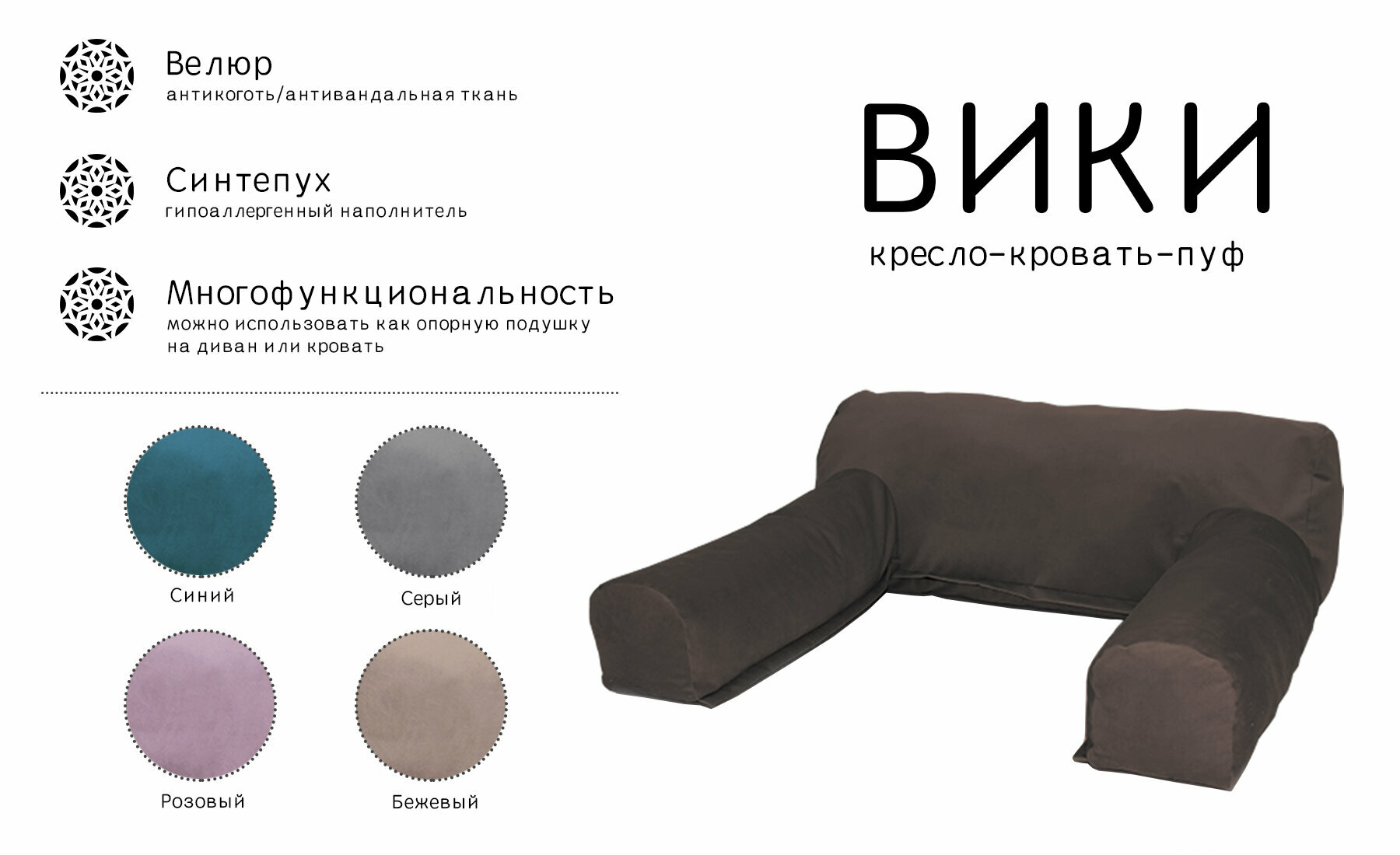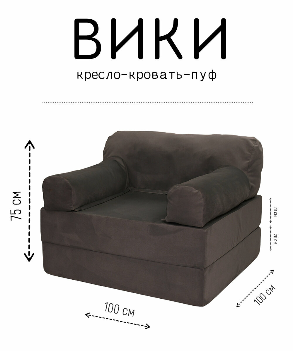 Отзывы на Кресло диван кровать бескаркасное Вики 100х100х75 с подушкой-опорой для отдыха на балконе террасе веранде лоджии в холл поролон велюр коричневый