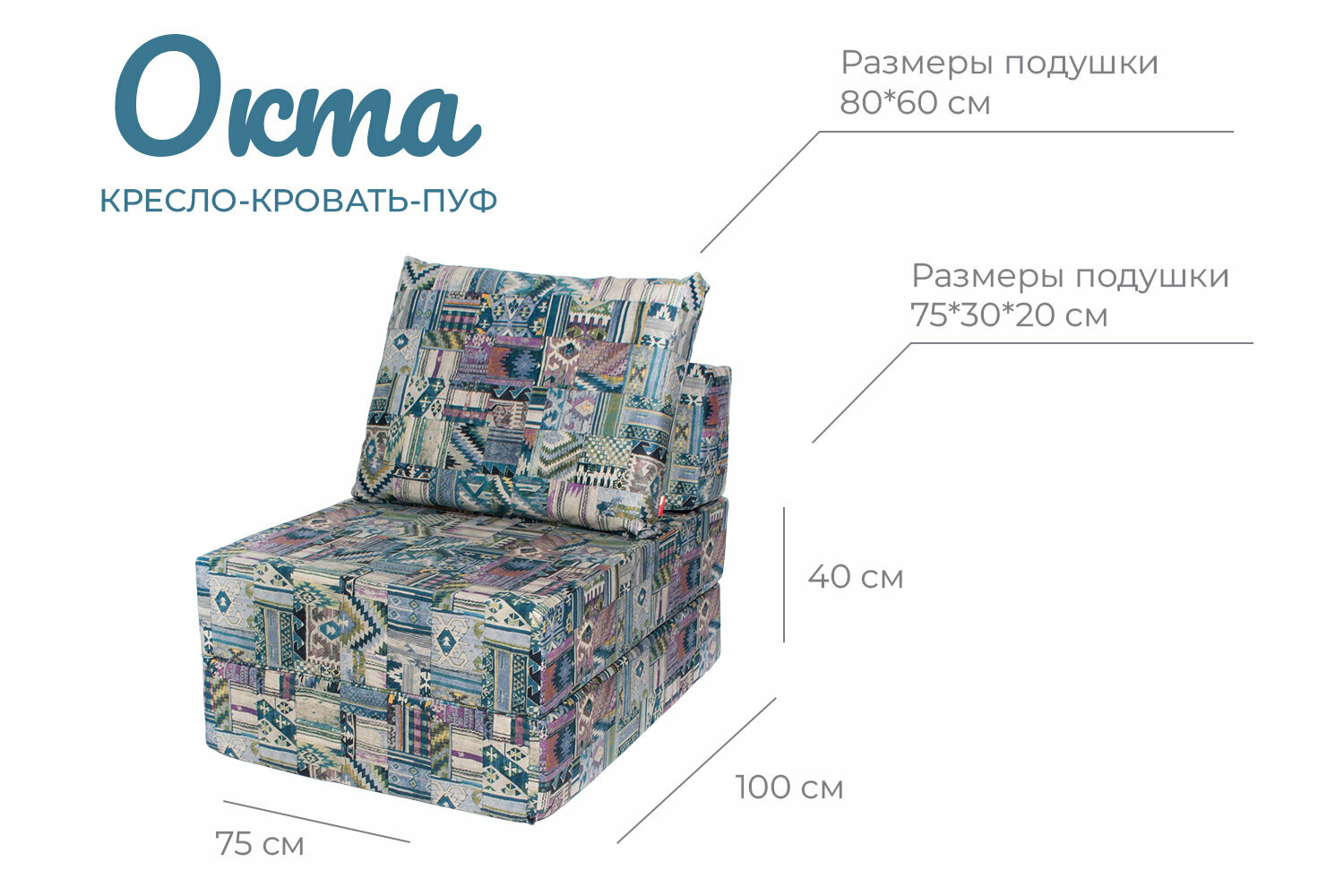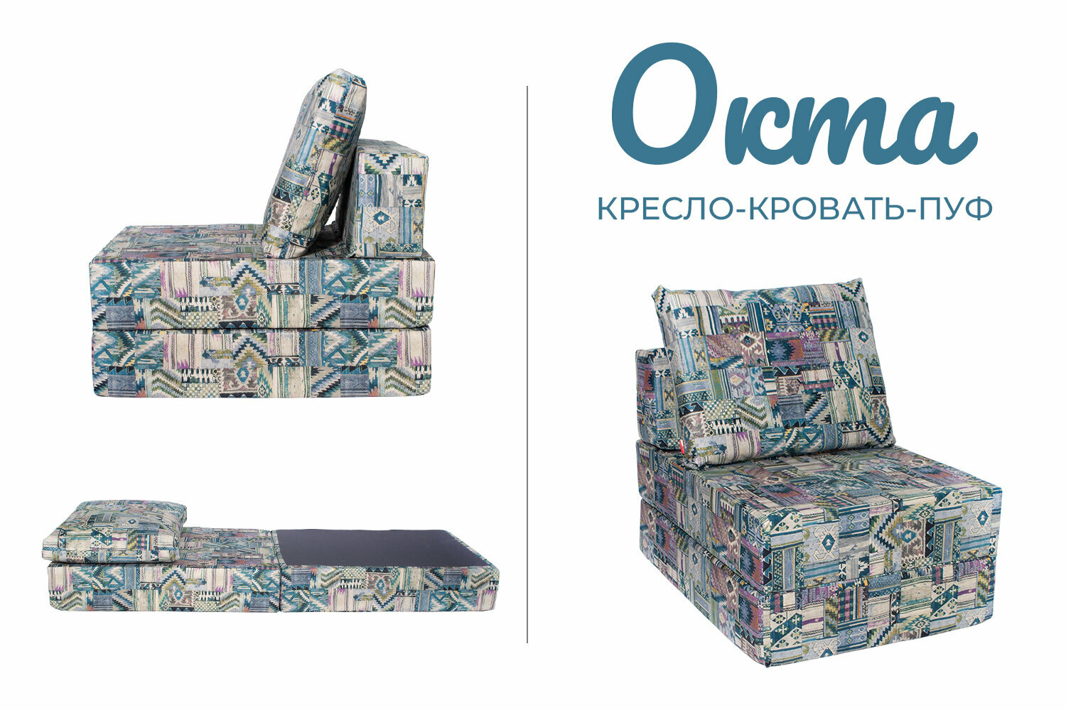 Отзывы на Кресло-кровать-пуф бескаркасное 75*100*75 "Окта" велюр принт FREE-FORM наска