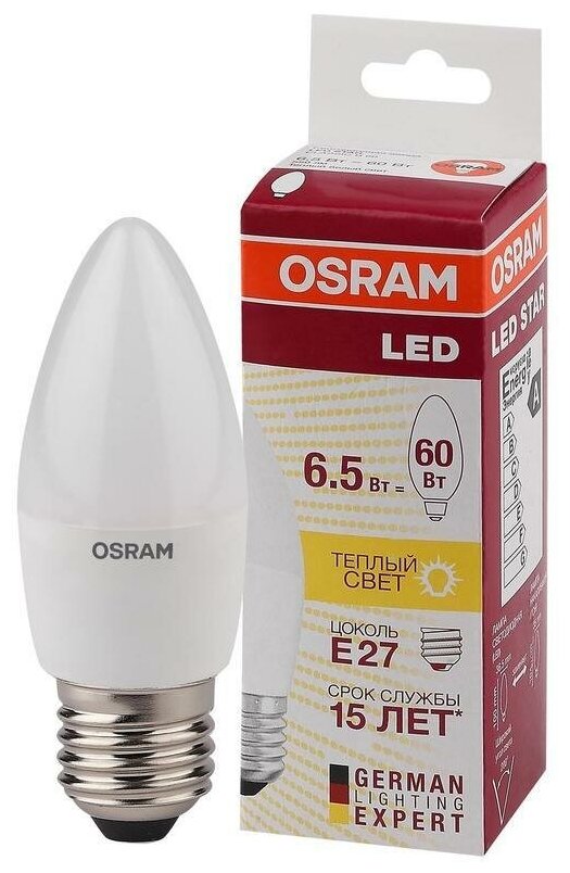 Отзывы на Osram Светодиодная лампа LED Star B Свеча 65Вт E27 550 Лм 3000 К Теплый белый свет 4058075134232 .