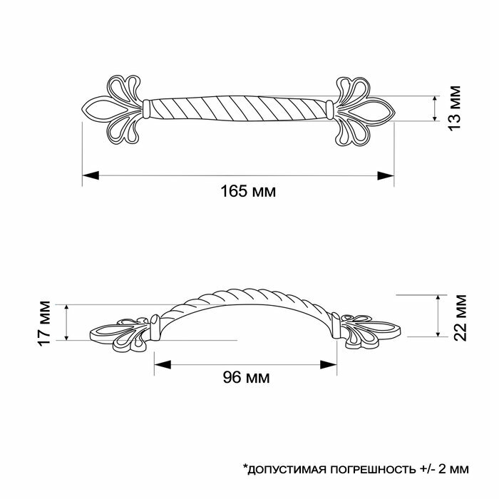 Тундра Ручка-скоба PC175AB, м/о 96 мм, цвет бронза
