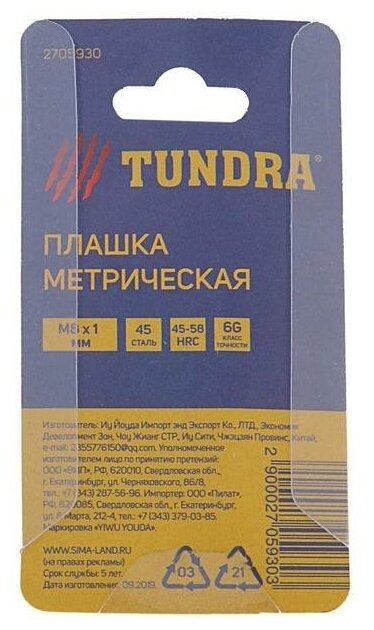 Плашка метрическая тундра, М8 х 1 мм. В наборе 1шт. информация: