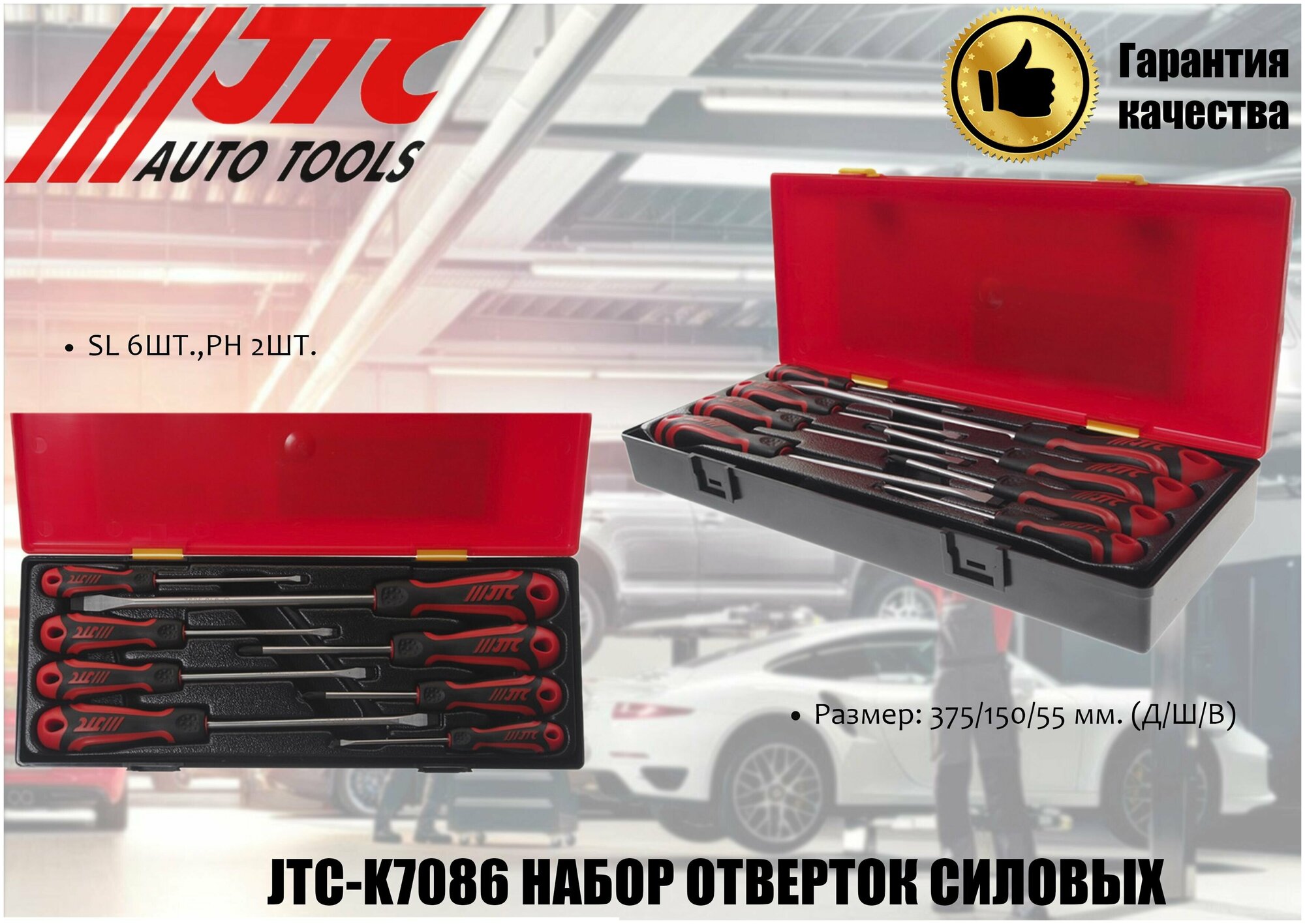 JTC JTC-K7086 Набор отверток 8 пр. силовых SL 6 шт., PH 2 шт. (ст. арт. JTC-K7083) JTC /1