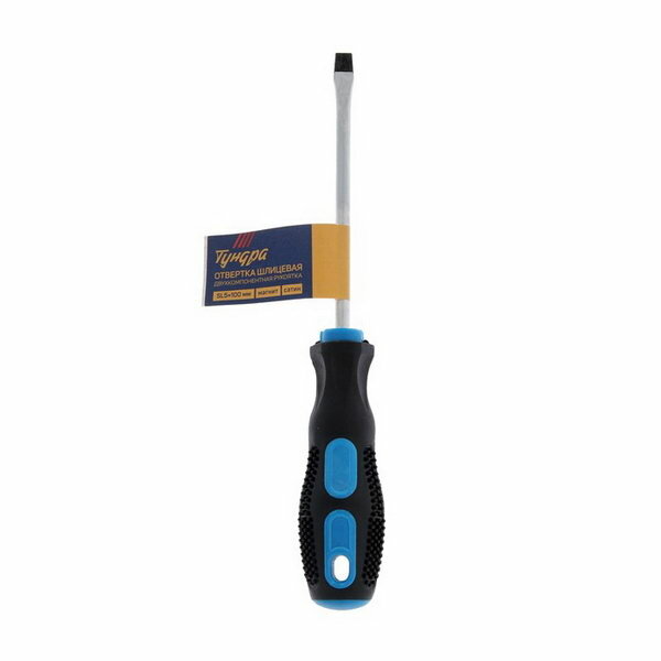 TUNDRA Отвертка шлицевая тундра, сатин, магнит, двухкомпонентная рукоятка, SL5 х 100 мм