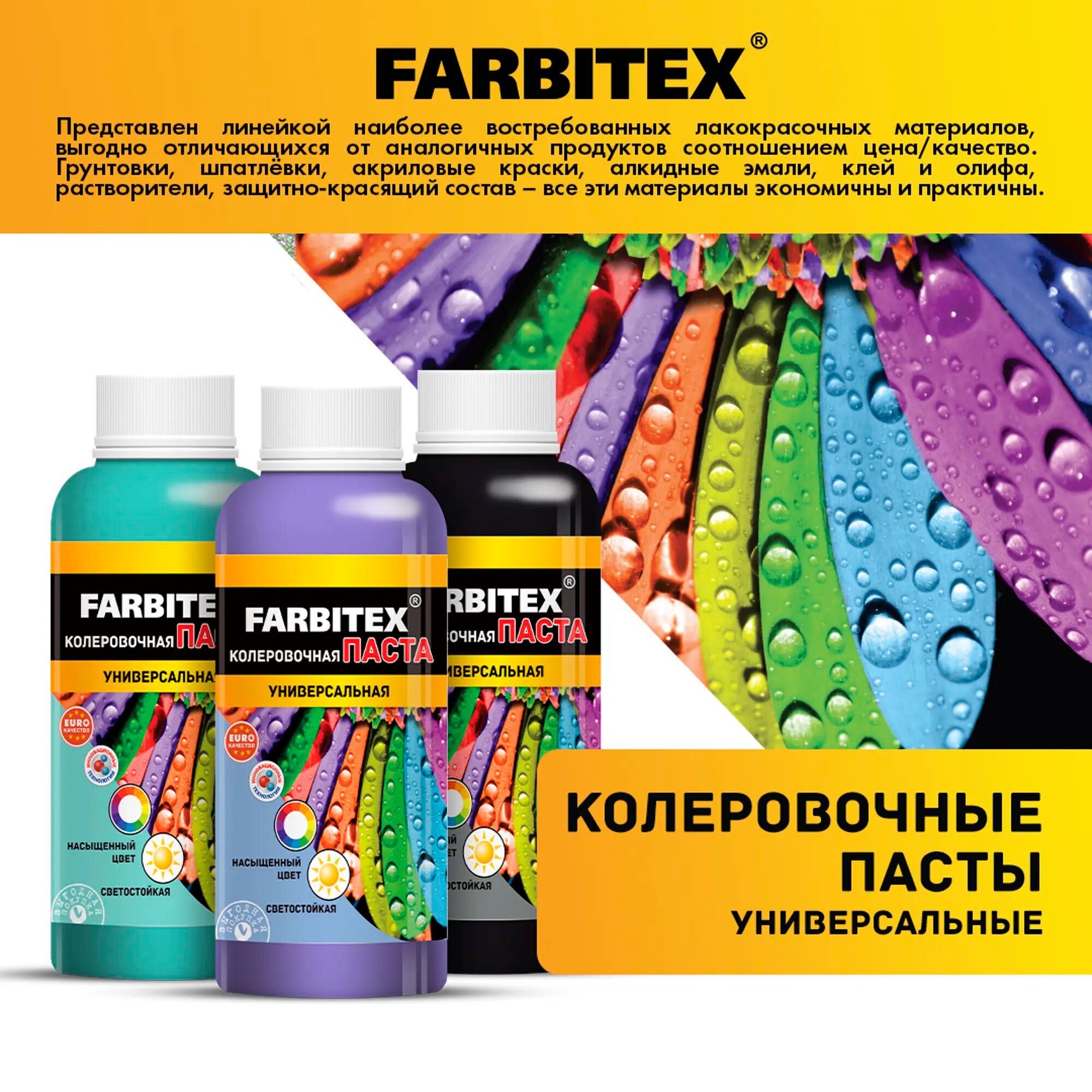 Колер для краски, паста колеровочная универсальная FARBITEX Ярко-желтый 100 мл 219 ₽