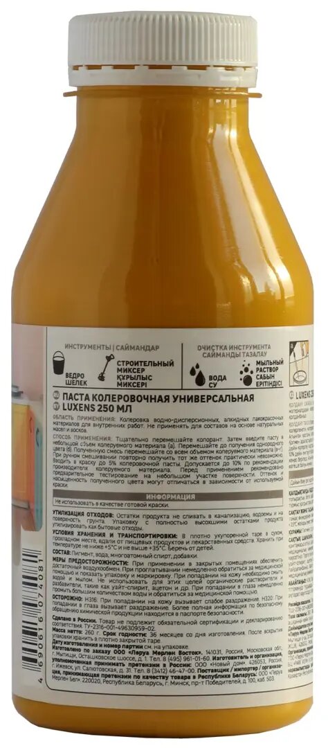 Колеровочная паста Luxens колорант универсальный для интерьерных работ, оранжевый, 0.25 л