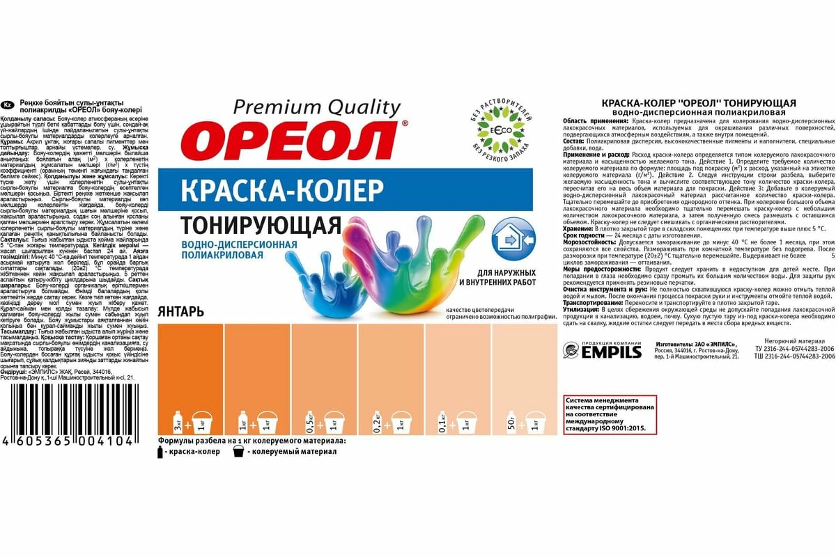 Колер краска Ореол янтарь 730 г, оранжевый, Россия