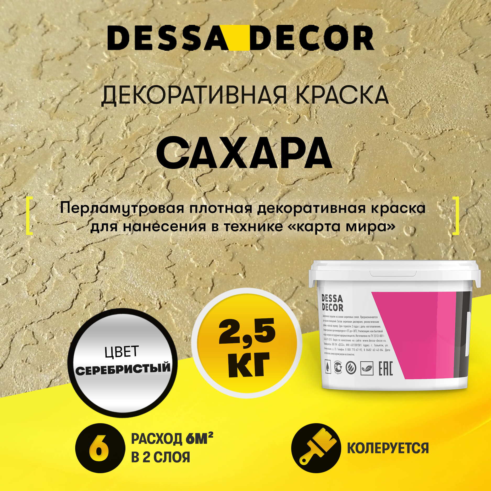 Декоративная краска для стен DESSA DECOR Сахара 2,5 кг, декоративная штукатурка для стен для имитации песчаной поверхности со стеклянными шариками информация: