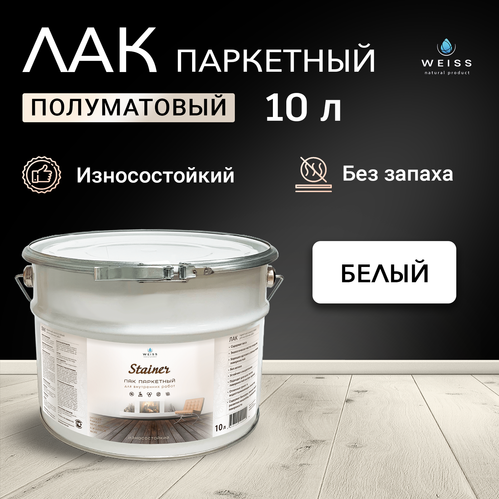 Лак строительный паркетный белый полуматовый, для пола, для паркета, для стен, для мебели, для дерева Weiss natural product без запаха самовыравнивающийся 10л 7 100 ₽