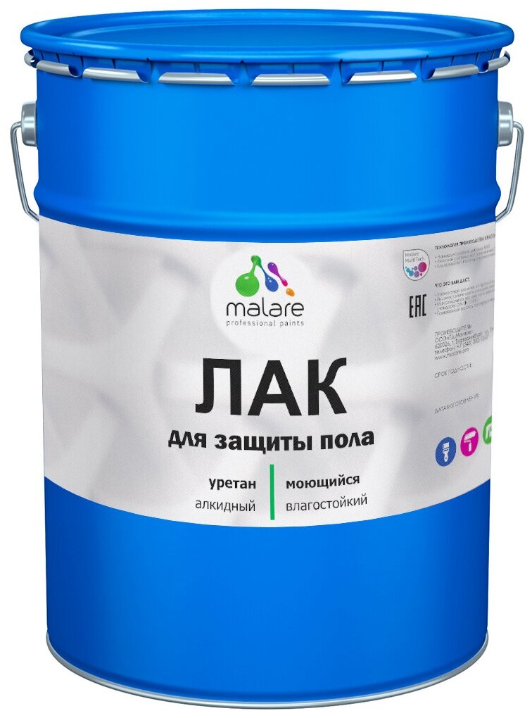 Лак Malare Professional для пола, паркета и ламината, для дерева и минеральных поверхностей, алкидно-уреатновый, высокопрочный, прозрачный, матовый 10 кг. информация: