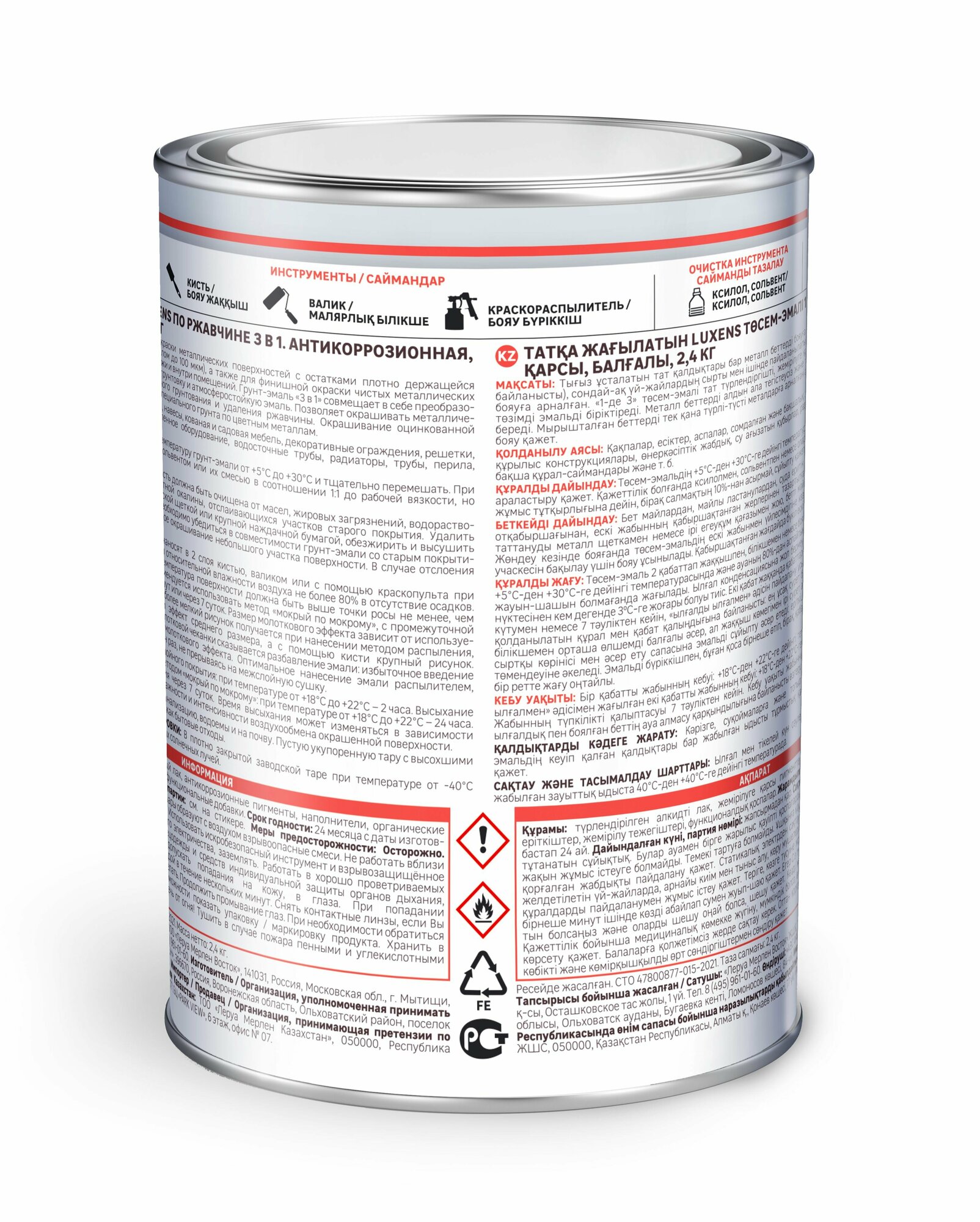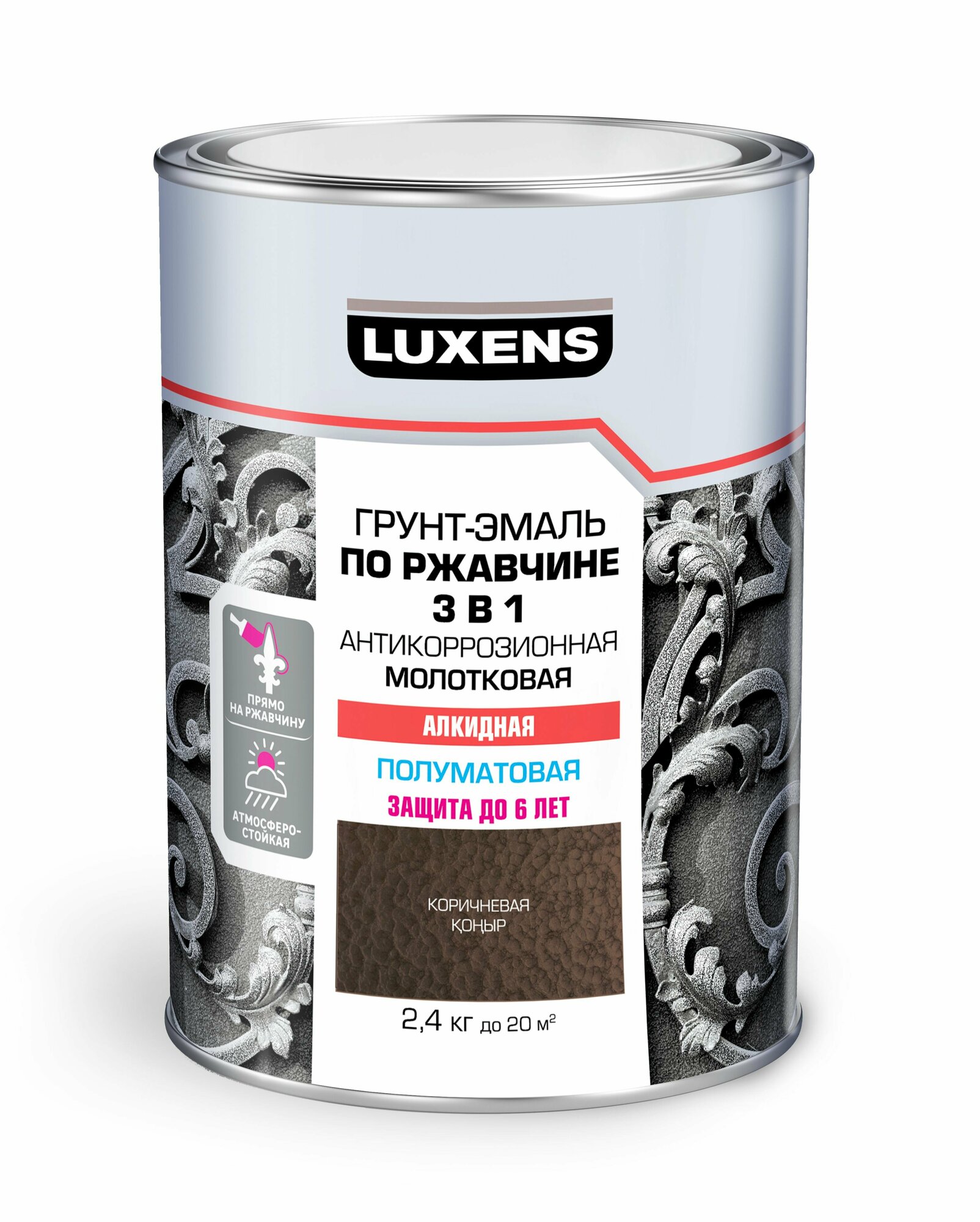 Эмаль по ржавчине 3 в 1 Luxens молотковая цвет коричневый 2.4 кг информация: