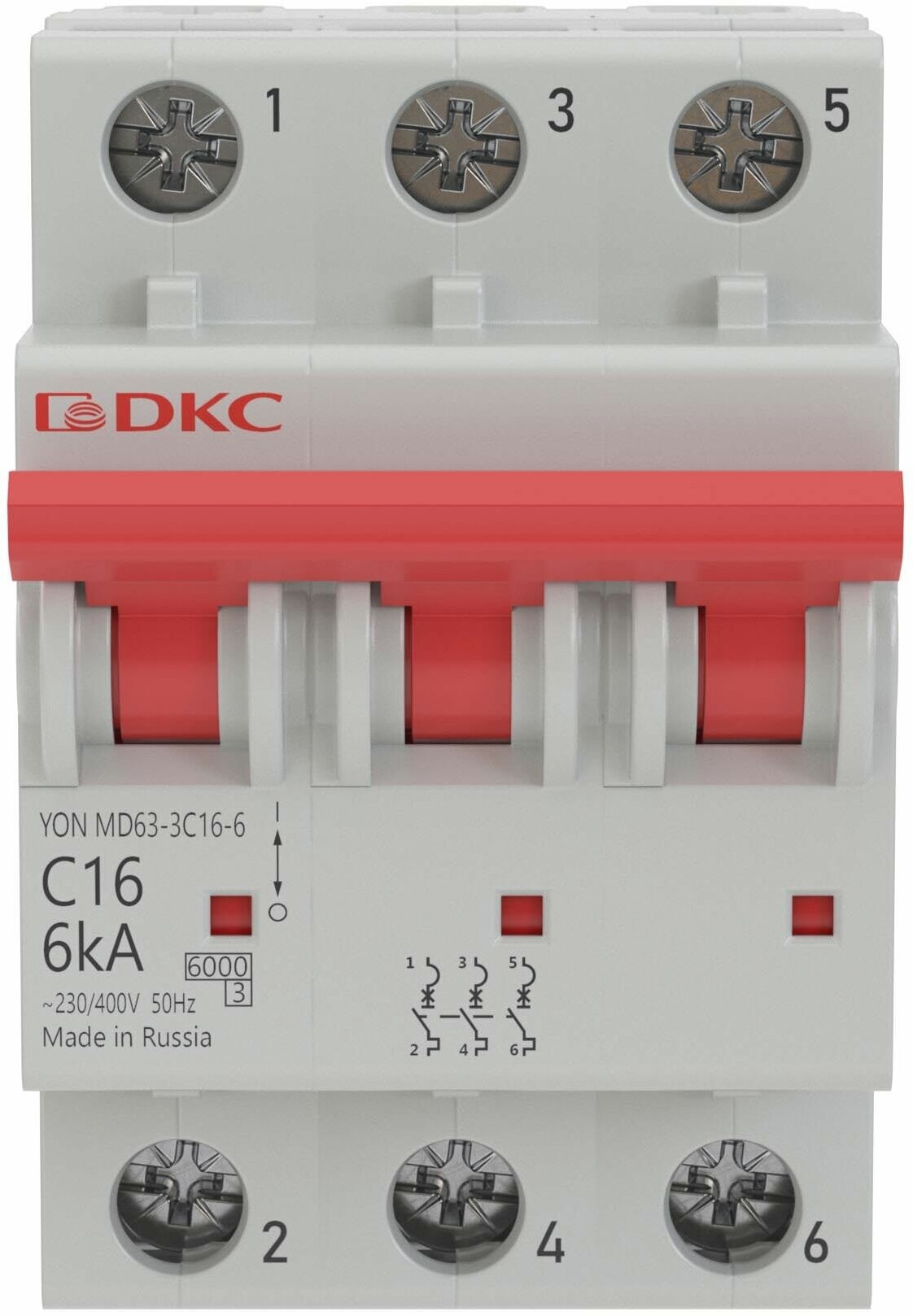 Выключатель автоматический модульный YON 16А 3П трехполюсный C 6кА MD63-3C16-6 DKC 2 360 ₽