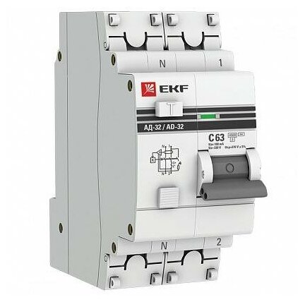 Дифференциальный автомат АД-32 1P+N 63А/100мА 4,5кА EKF PROxima DA32-63-100-pro