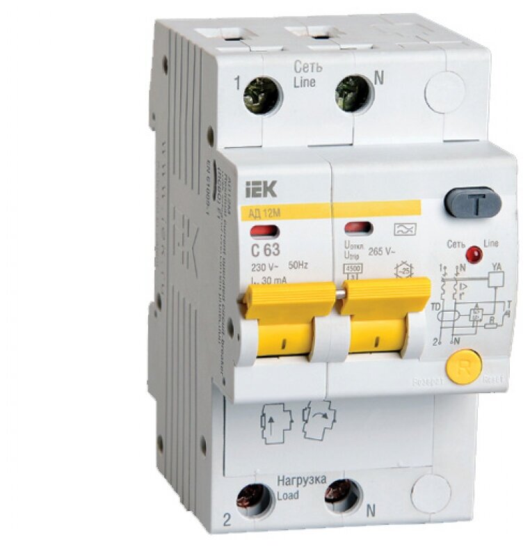Отзывы на Дифференциальный автоматический выключатель тока IEK Ад-12м C, 63A, 30mA, тип A, 4.5kA, 2п, 4модуля