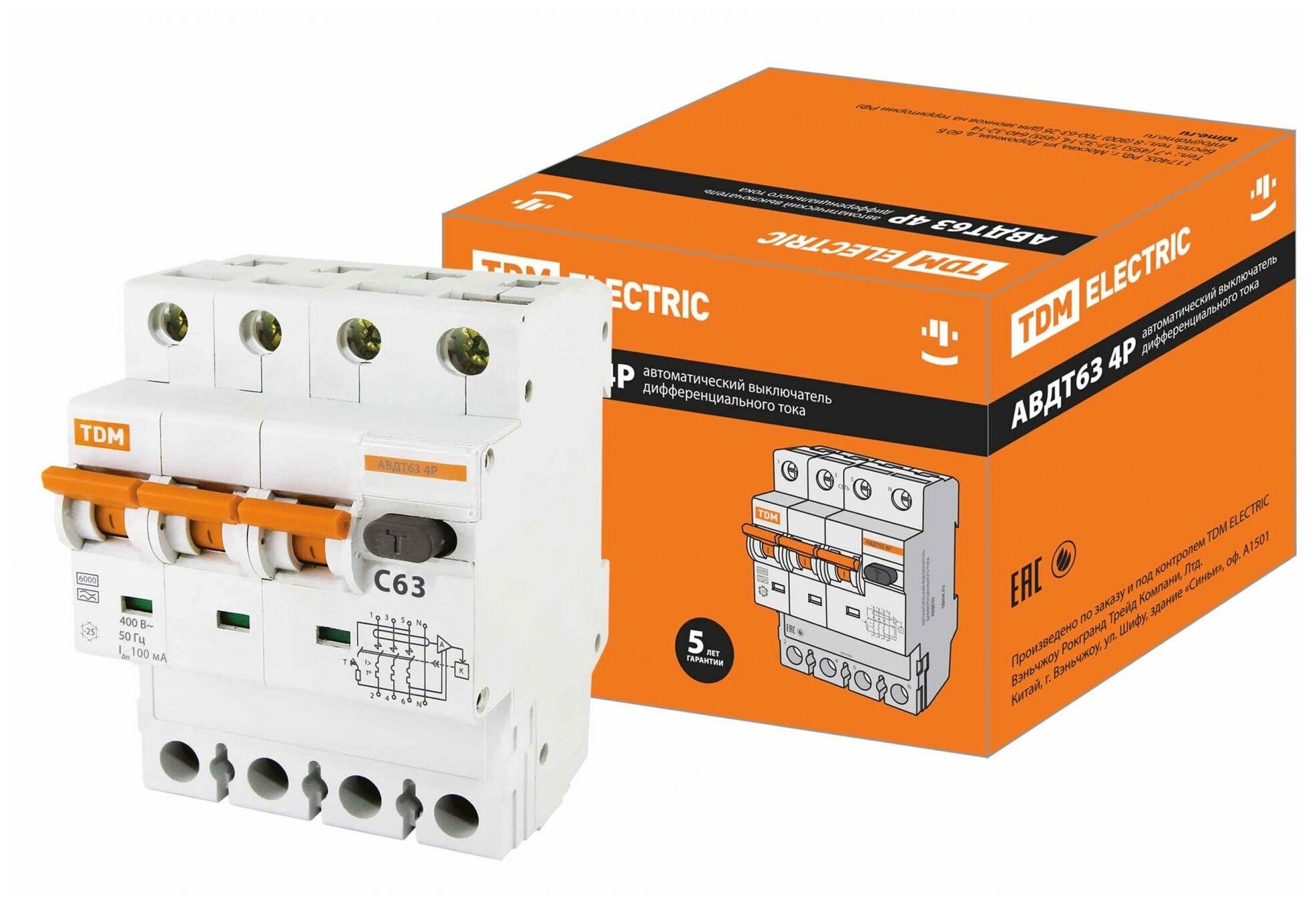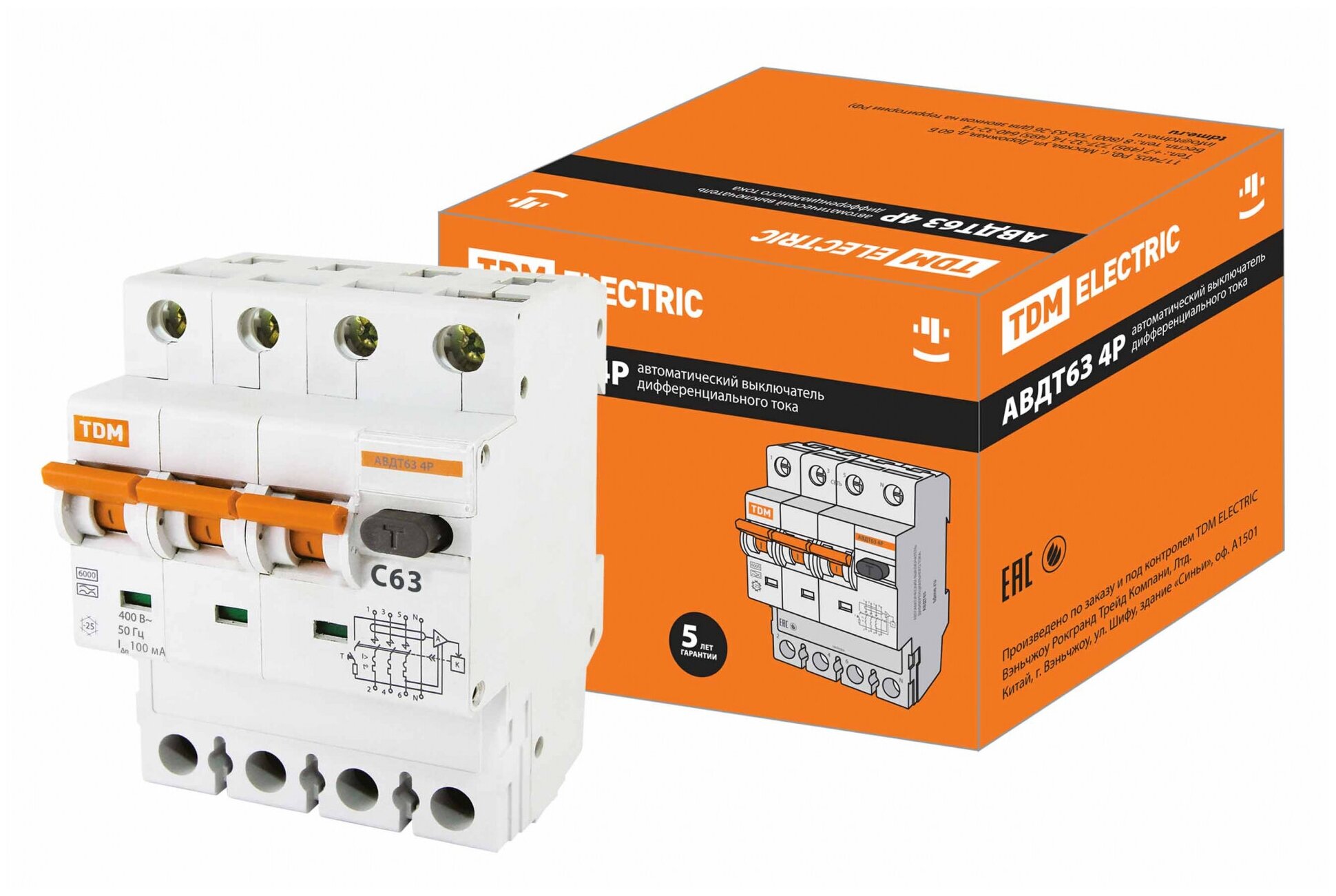 Автоматический Выключатель дифференциального тока (АВДТ) 63 4P C63 100мА TDM 0202-0056 информация: