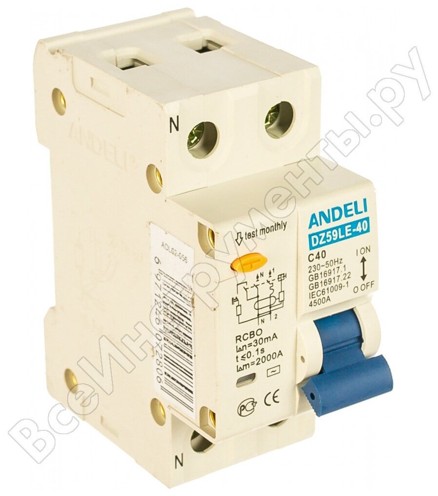 Отзывы на Дифф. автомат ANDELI DZ59LE-40/63 тип АС 40А-30мА 230В 1P+N 4,5кА ADL02-056