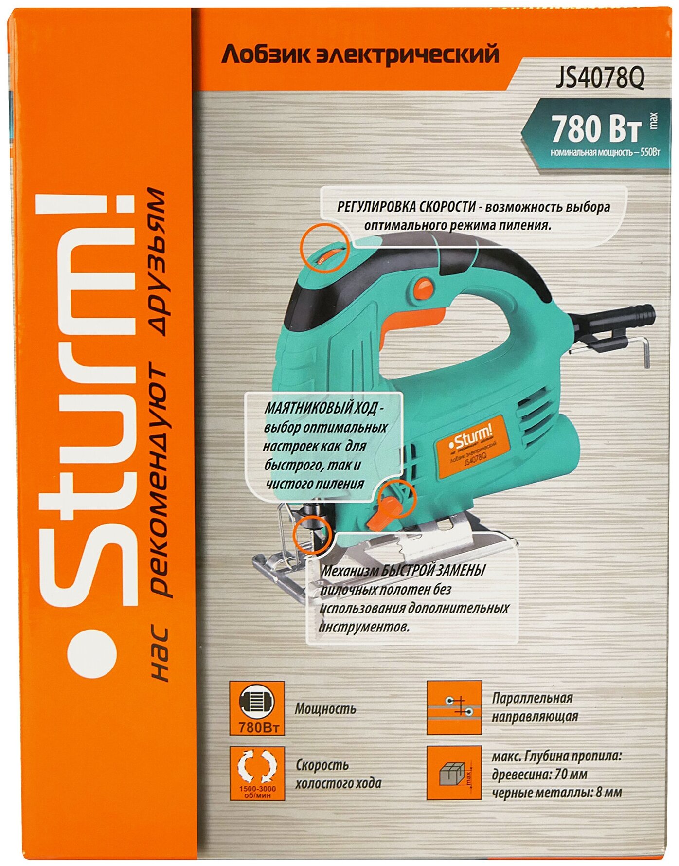 JS4078Q Лобзик электрический 780Вт,70/8мм (дер/мет), быстрозаж,4ст. маятник, Sturm!