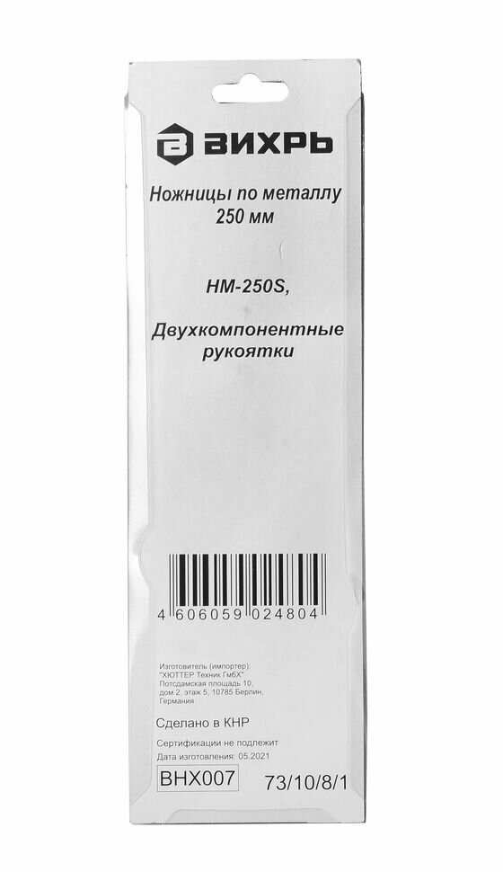 Ножницы по металлу 250мм НМ-250S двухкомпонентные рукоятки Вихрь 73/10/8/1 ( 1шт. ) информация: