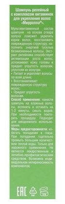 Шампунь репейный Mirrolla, комплекс витаминов для укрепления волос, 150 мл информация: