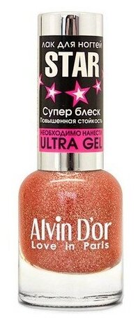 Alvin D'or, Лак для ногтей STAR Супер блеск звездный оранж тон 6123
