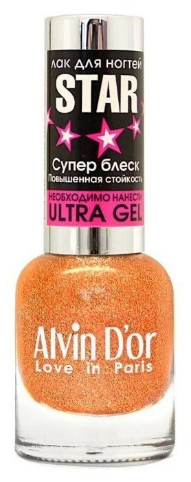 Alvin D'or, Лак для ногтей STAR Супер блеск звездный оранж тон 6123