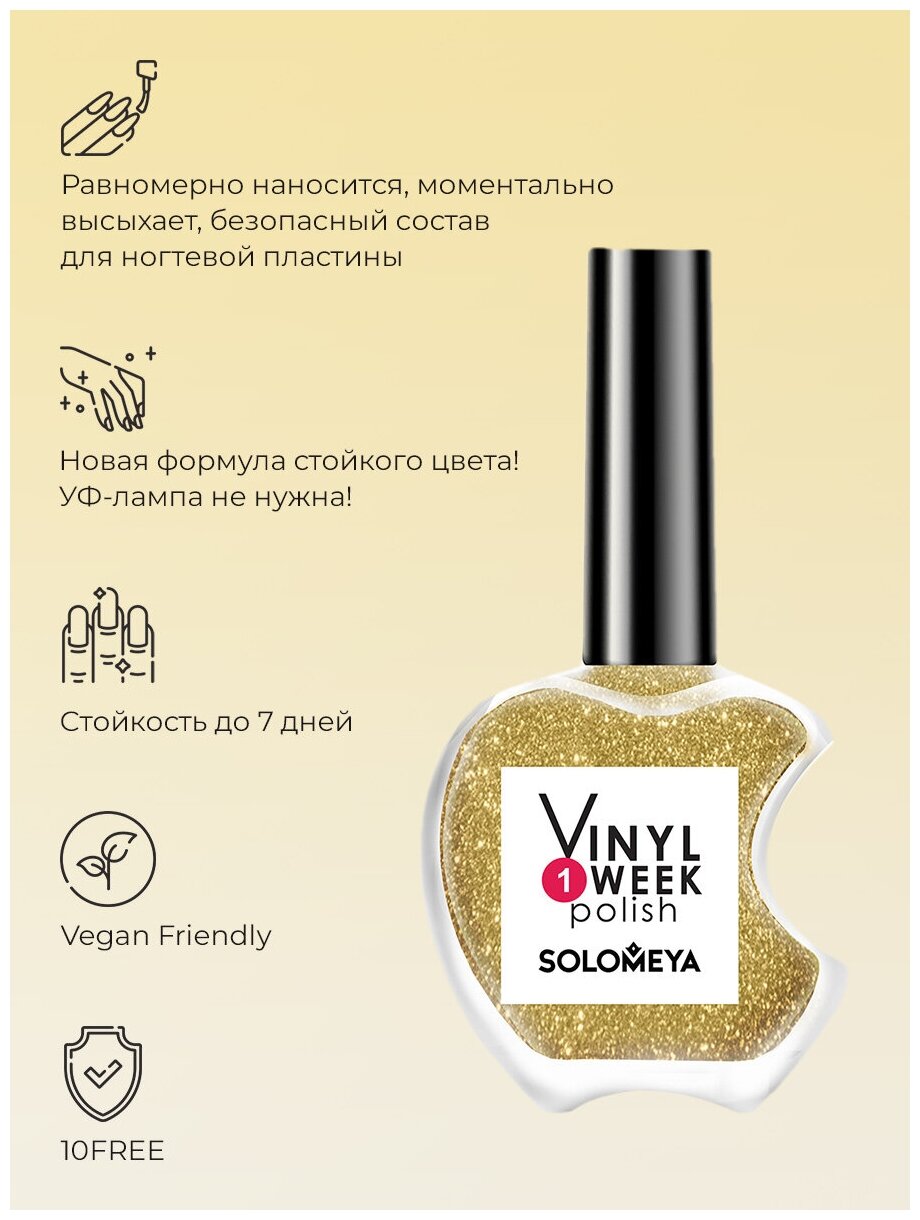 Лак для ногтей стойкий Solomeya, недельный лак для ногтей, глянцевый цвет Горячее золото, One Week Vinyl Polish Hot Gold 2, 13 мл информация: