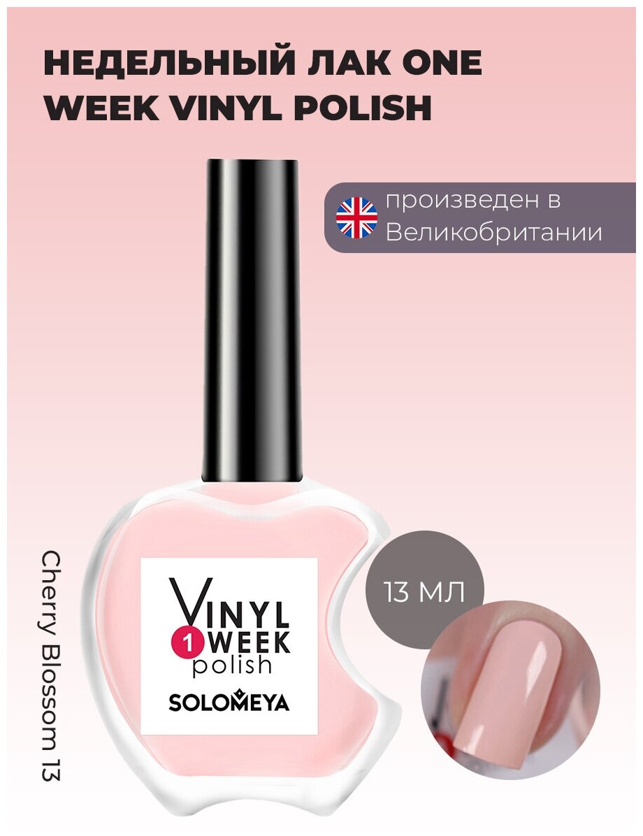 Лак для ногтей стойкий Solomeya, недельный лак для ногтей, глянцевый цвет Цветущая вишня, One Week Vinyl Polish Cherry Blossom 13, 13 мл информация: