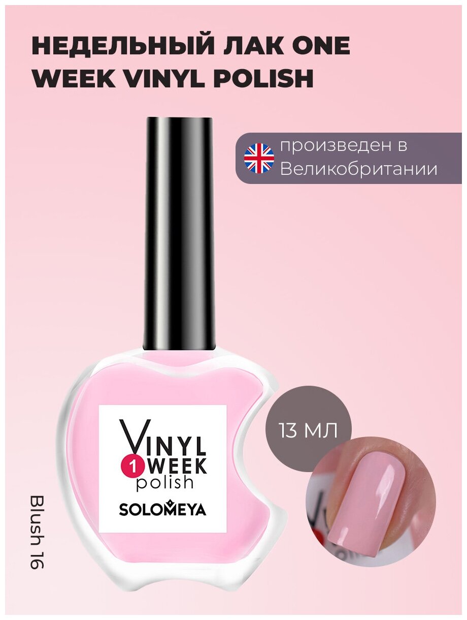 Лак для ногтей стойкий Solomeya, недельный лак для ногтей, глянцевый цвет Румянец, One Week Vinyl Polish Blush 16, 13 мл информация: