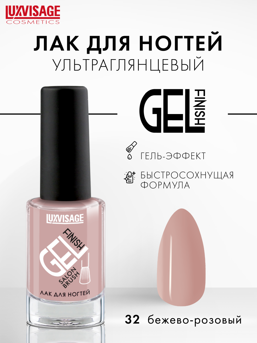 Лак для ногтей LUXVISAGE, GEL FINISH, Бежево-розовый, стойкий, глянцевый, тон 32, 9 гр