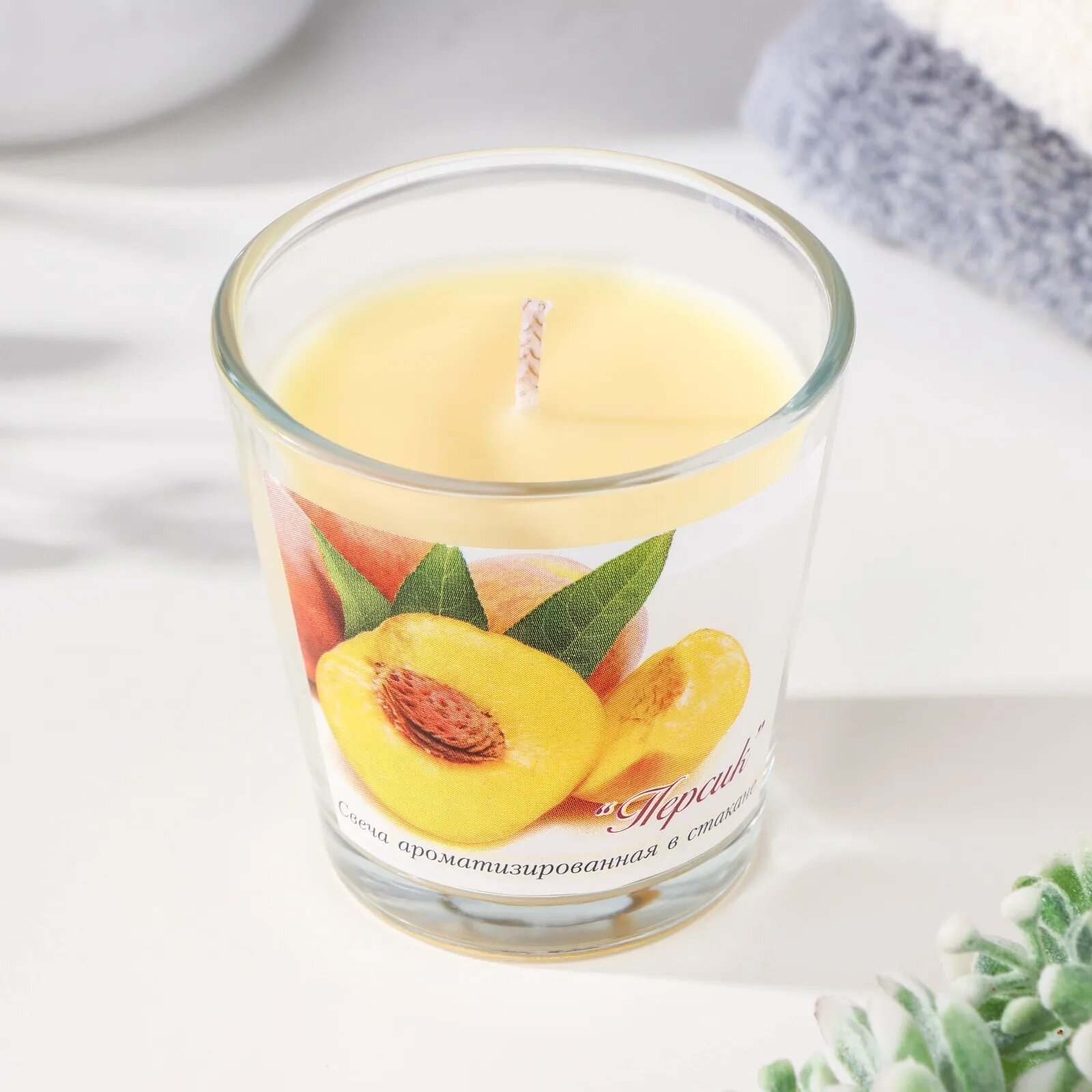 10 цен на Свеча ароматическая в стакане "Персик", 6,5х6,5 см, 10 ч, 165 г, желтая